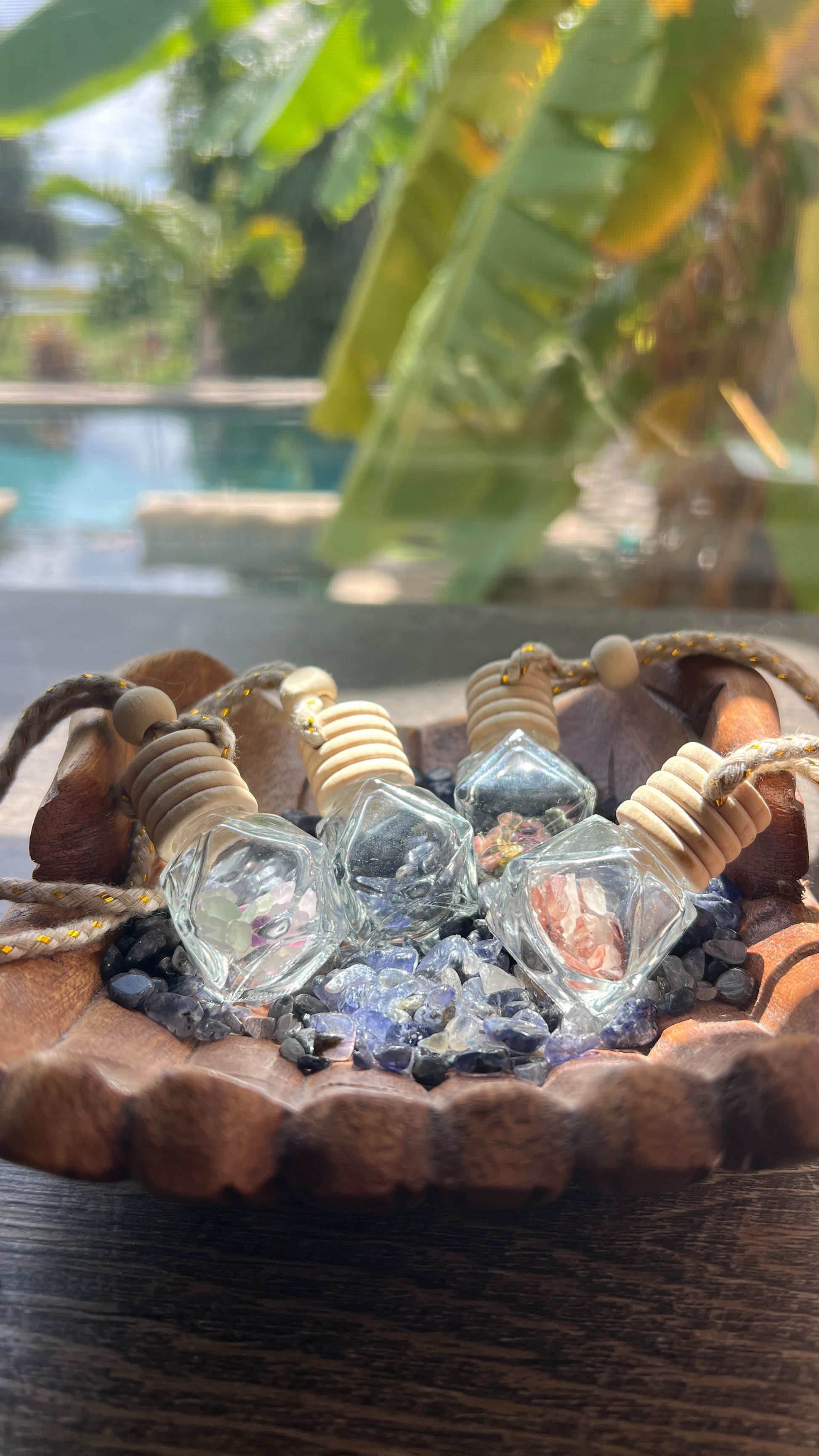 3. Hang it from your rearview mirror and enjoy the gentle scent and crystal energy as you drive.